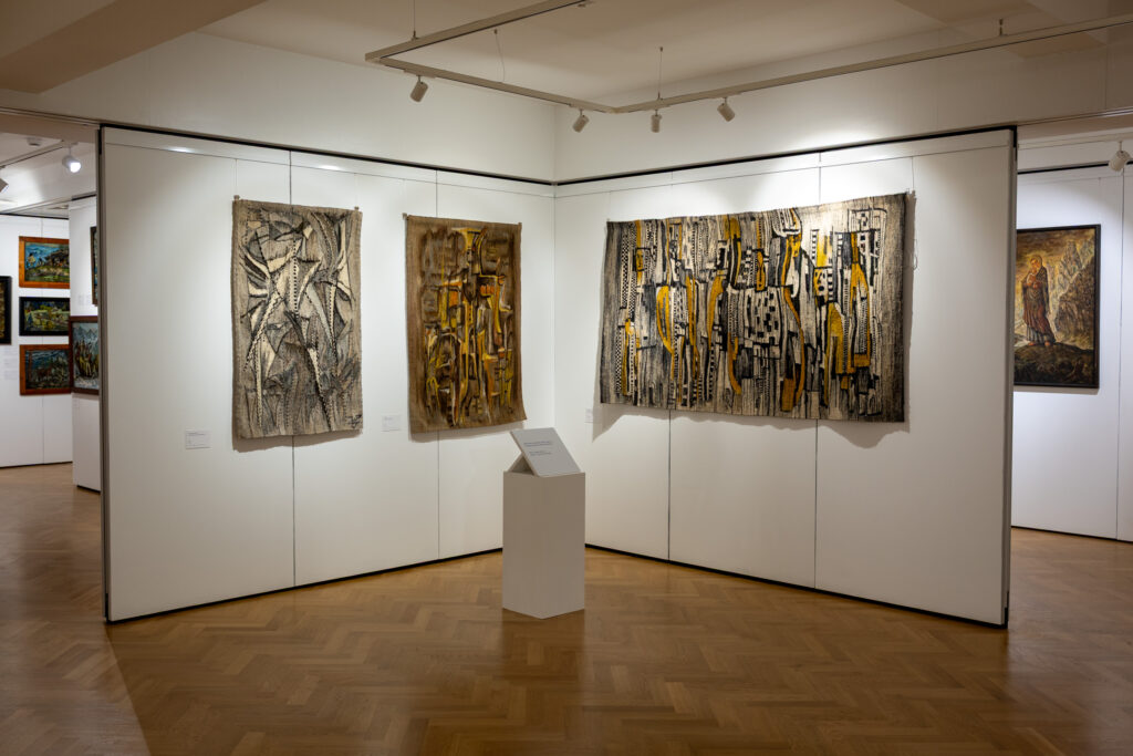 Warto podkreślić, że twórczość Władysława Trebuni-Tutki nie kończyła się na obrazach. Wśród jego prac prezentowanych na wystawie „Tutaj, poza czas” zobaczycie również projekty gobelinów utrzymanych w abstrakcyjnej stylistyce takie jak pozostający w tonacji szarości „Praprzodki hyrnych” czy też „Rajskie ogrody” z motywem nimf i boginek oraz podziwiane przez wielu rysunki artysty, których tematem są zbójnicy, słowiańskie bóstwa oraz tatrzańska mitologia.